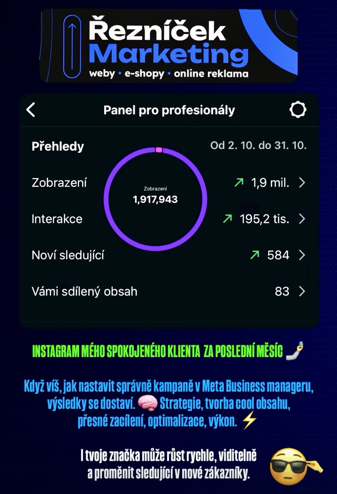 Díky svým více než jedenáctiletým zkušenostem v online marketingu Vám dokáži přivést nové platící zákazníky. Specializuji se na propagaci na sociálních sítích Facebook a Instagram. Pomohu Vám vytěžit maximum v online prostředí a navýšit Vaše tržby. Pojďme vytvořit Váš digitální úspěch.